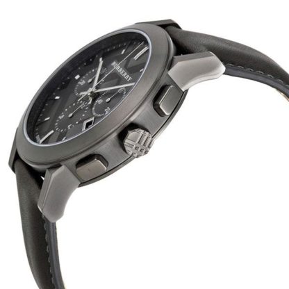 You will love this one of the original timepieces from the Burberry collection, this timepiece has a dark ion-plated stainless steel case with a dark grey leather strap. It shows its dark grey ion-plated bezel and a dark grey check stamped dial with luminous grey hands and index hour markers, the time is displayed in perfection.  The water resistance of this watch is at 50 meters / 165 feet, so it can be submerged in water for some time and depth. Its functions are chronograph, date, hour, minute, second. Casual watch style. The real classical look, Burberry Chronograph Dark Grey Dial Dark Grey Leather Men’s Watch BU9364.
