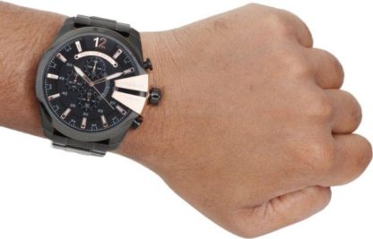Diesel Mega Chief DZ4309 is an amazing and special Gents watch. Case material is Black Ion-plated Steel while the dial color is Black. The features of the watch include (among others) a chronograph and date function. 100 meters water resistance will protect the watch and allows it to get submerged in the water for everyday usage including swimming, but not high impact water sports. We ship it with an original box and a guarantee from the manufacturer