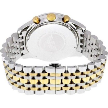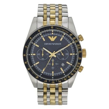 Emporio Armani AR6088 is an amazing and attractive Men’s watch. Material of the case is Two-tone steel/gold plate, which stands for a high quality of the item while the dial color is Grey. The features of the watch include (among others) a chronograph and date function. This model has got 50 meters water resistance – it can be submerged in water for periods, so can be used for swimming and fishing. It is not recommended for high impact water sports. The watch is shipped with an original box and a guarantee from the manufacturer